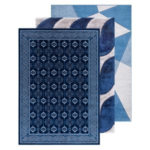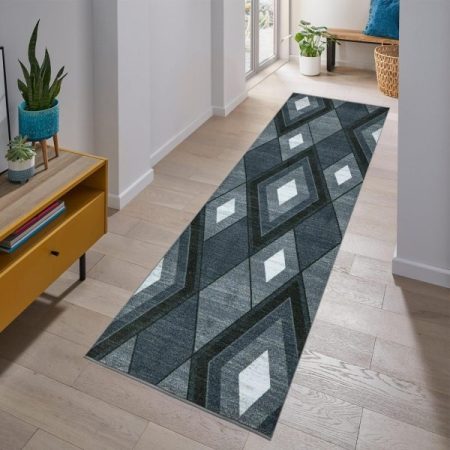 A Navy Blue Rug Runner with Geometric patterns gives a modern and sophisticated look. The patterns make the space feel longer, which is ideal for narrow halls.
